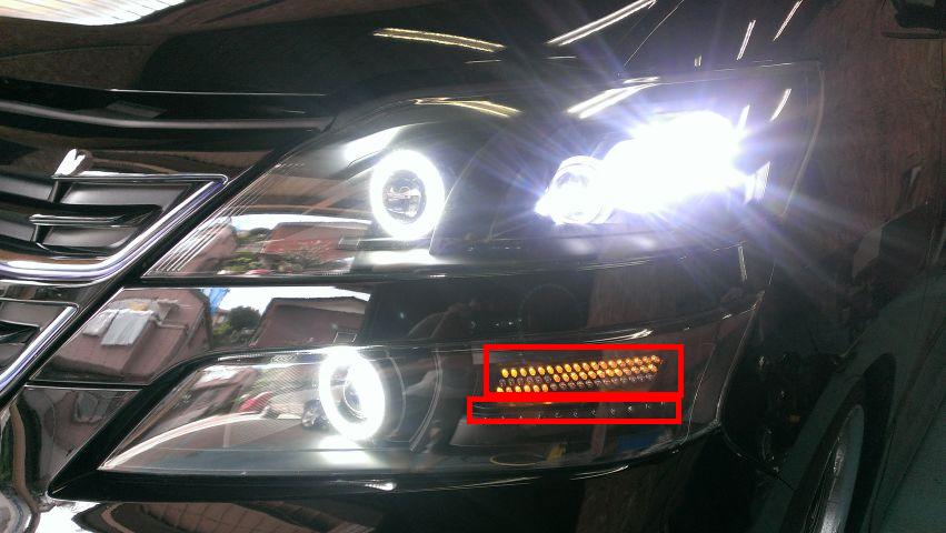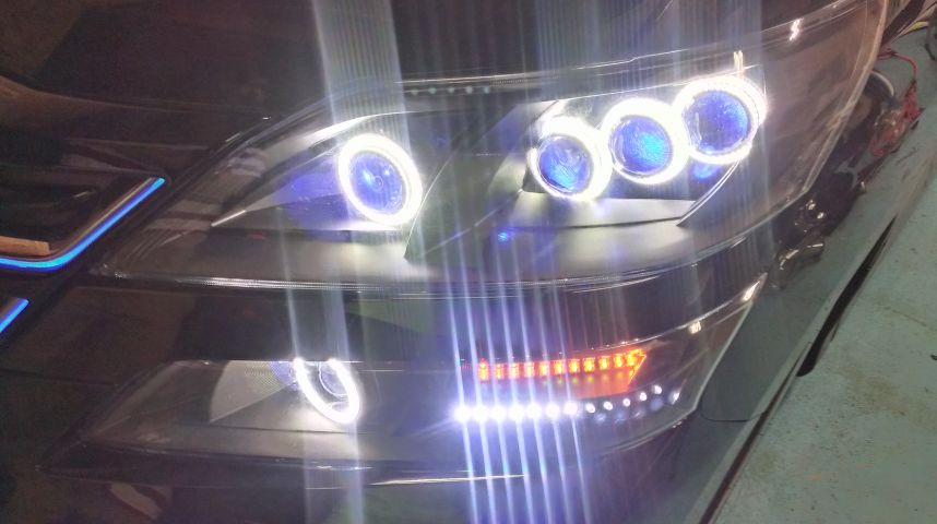 30ヴェルファイアでは定番のシーケンシャルウインカー加工、ブルーイカリング施工、