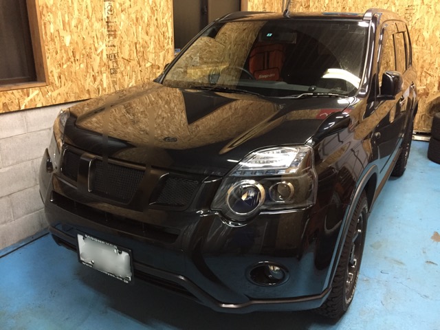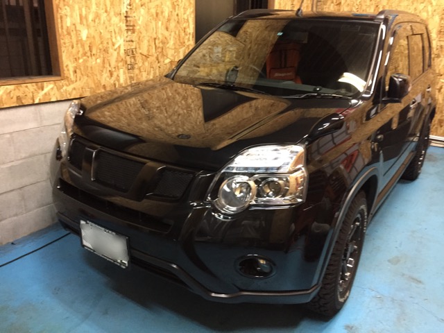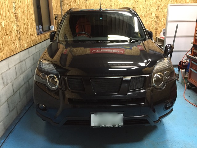 横浜市Y様より現行エクストレイルの社外ヘッドライト取付で入庫です。