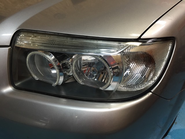 今回、純正バラスト交換、レンズ両面リペア&コーティング、左右再シーリング、ついでなので4連SMDイカリングも施工をしました。