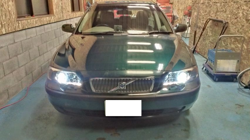 2003y ボルボV70 社外プロジェクターLEDヘッドライトの交換と